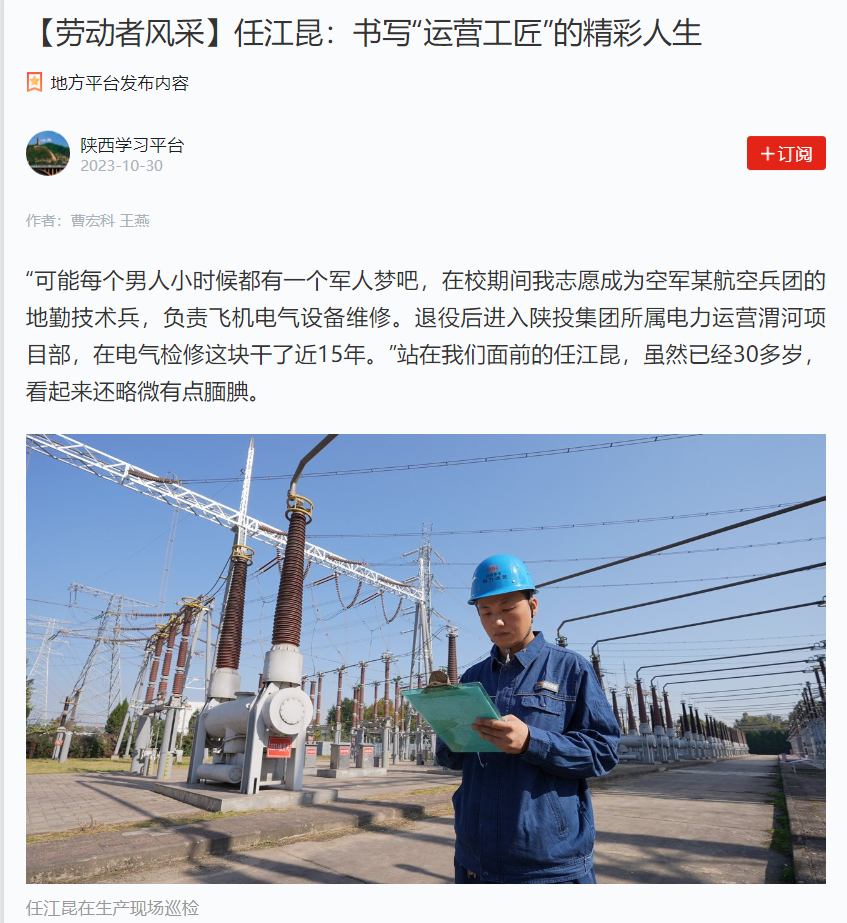 “可能每個男人小時候都有一個軍人夢吧,在校期間我志愿成為空軍某航空兵團的地勤技術(shù)兵,負責(zé)飛機電氣設(shè)備維修。退役后進入電力運營渭河項目部,在電氣檢修這塊干了近15年?!闭驹谖覀兠媲暗娜谓ィm然已經(jīng)30多歲,看起來還略微有點靦腆。