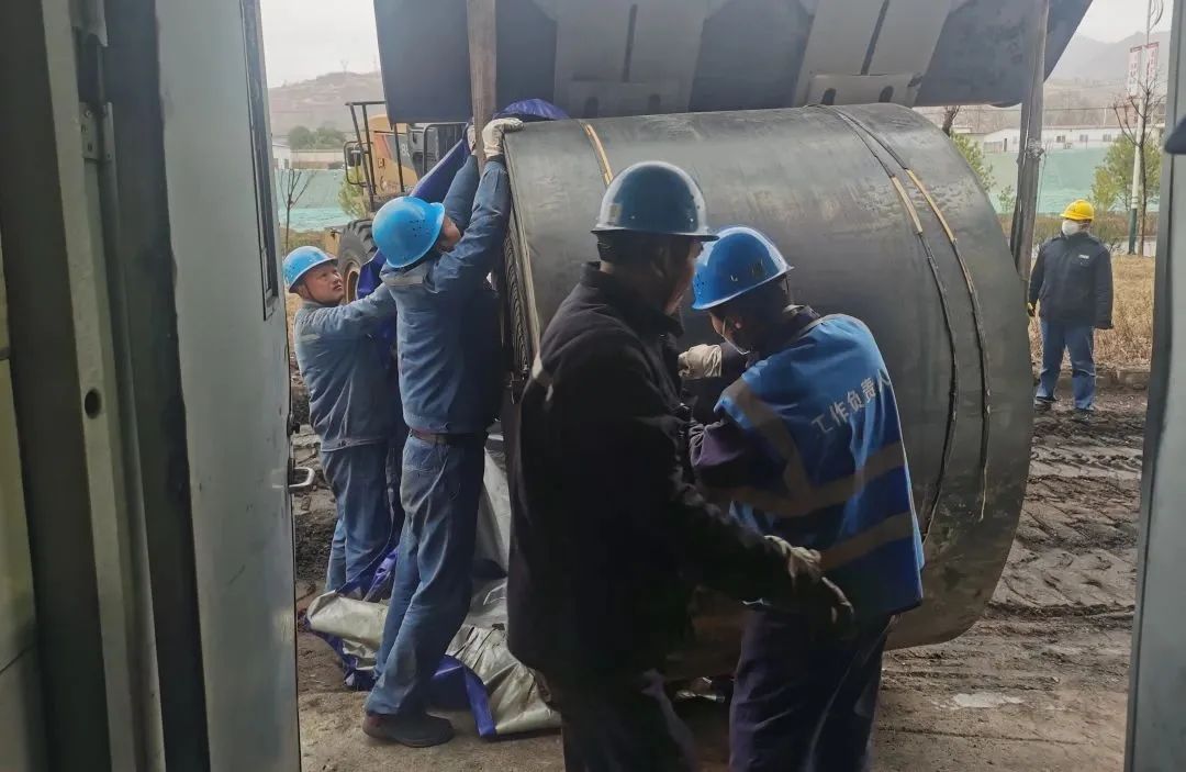 皮帶更換現(xiàn)場,檢修人員一起拉著200米長的皮帶,使出渾身力氣,共同喊著號子,咬緊牙關(guān)抓緊繩索一步一步前行,沉重的皮帶一點(diǎn)點(diǎn)慢慢向前移動,黑色“長龍”終于成功“趴”在了皮帶支架上。