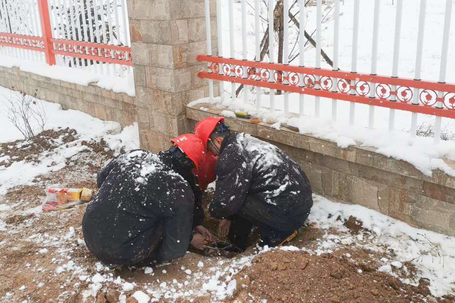 1月9日,趙石畔項(xiàng)目部電氣班工作人員,迎著飄飛的雪花,冒著室外零下十幾度的嚴(yán)寒,輪流用鐵鍬小心挖開(kāi)凍土,抽絲剝繭,查找電纜故障。最終,經(jīng)過(guò)4個(gè)多小時(shí)的不懈努力,順利恢復(fù)了34盞路燈的照明。